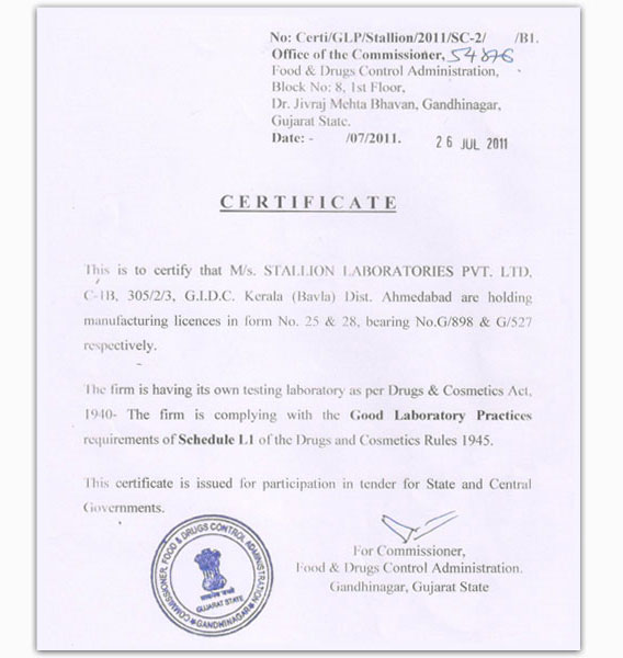 Our QC Laboratory has received GLP (Good Laboratory Practice ) Certificate